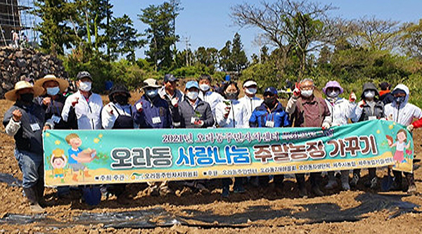 제주시 오라동 주민자치위원회(위원장 고보환)는 지난 18일 주민자치 위원 및 오라동 자생단체 회원 등 30명이 참여해 2021년 주민자치센터특화프로그램인 오라동 사랑나눔 주말농장 가꾸기 행사를 진행했다.