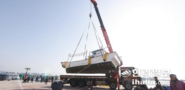 인양되는 한림항 침몰 어선