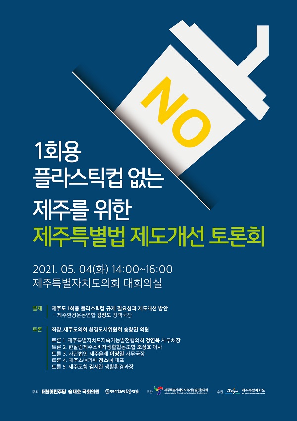 토론회는 도내 1회용 플라스틱컵에 대한 전면적인 사용제한의 필요성과 제주특별법 개정을 통한 규제방안 마련에 대한 발표를 시작으로 규제의 필요성과 실현가능성, 제도개선 과정에 고려돼야 할 사항 등을 시민사회단체, 사업자, 행정이 함께 토론을 벌일 예정이다.