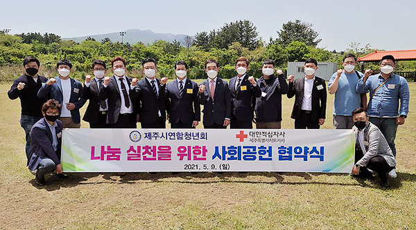 대한적십자사제주특별자치도지사(회장 오홍식)는 제주시연합청년회(회장 고성균)와 지난 9일 명도암 참살이마을 운동장에서 업무협약을 체결했다. 양 기관은 재난안전, 사회봉사 등 따뜻한 지역사회 만들기에 상호 협력하기로 했다.