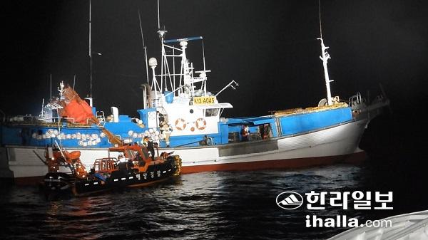 화재를 진압하고 있는 제주해양경찰서. 사진=제주해경서 제공
