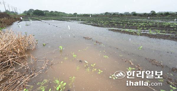 3일 장맛비에 잠겨버린 서귀포시 성산읍의 한 농경지. 이상국기자