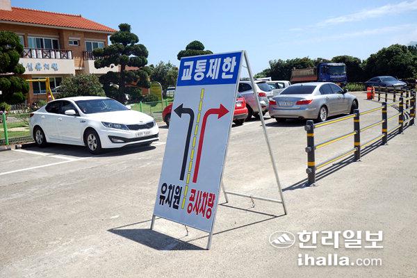 2015년 당시 A호텔과 유치원을 나눈 표지판. 한라일보DB