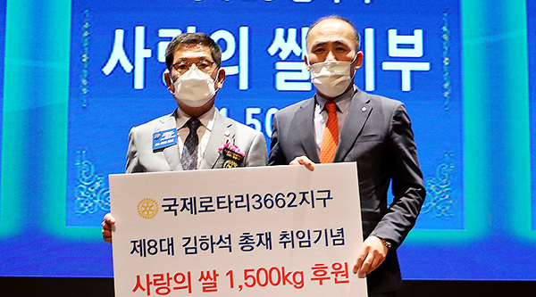 국제로타리 3662지구(총재 김하석)는 지난 9일 메종글래드 제주에서 열린 총재 이취임식에서 초록우산 어린이재단 제주지역본부에 사랑의 쌀 1500㎏을 전달했다.