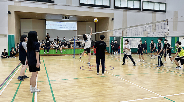 효돈중학교는 지난 2~8일 점심시간 학교스포츠클럽 활성화 프로젝트의 일환으로 반대항 리그전 '넷볼과 배구를 통해 우리 반을 하나로!' 프로그램을 운영했다.