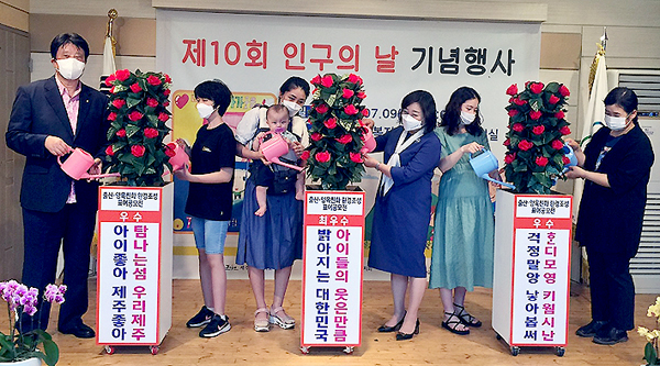 인구보건복지협회 제주지회와 제주특별자치도는 지난 9일 인구보건복지협회 제주지회 회의실에서 '제10회 인구의 날' 기념행사를 개최했다. 이날 행사에선 저출산 극복 유공자 표창과 공모전 시상도 진행됐다.