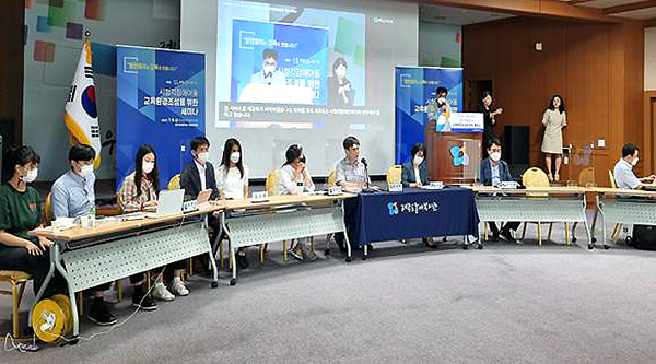 제주도농아복지관(관장 문성은)은 지난 8일 제주상공회의소 국제회의장에서 '시청각장애아동 교육환경 조성을 위한 세미나'를 온·오프라인으로 진행했다. 이날 세미나에선 시청각장애아동 개인별 특수성에 맞춘 교육시스템과 교육체계, 지원인력 등 교육환경 조성 필요성 등이 공유됐다. 세미나에선 홍성계 미국 애리조나대학 특수교육학과 학과장의 '미국 시청각장애인의 교육 현황-미국 시청각장애인 교육 사례에 기반한 한국 시청각장애 교육 방향', 이태훈 세한대학교 특수교육학과 교수의 '우리나라 시청각장애학생 교육지원 방안' 토론 등이 진행됐다.