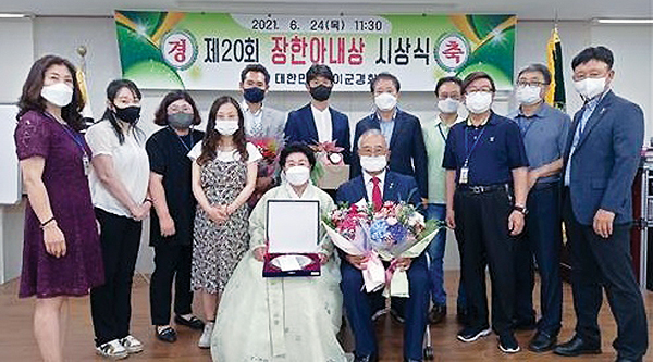 대한민국상이군경회 제주특별자치도지부(지부장 배문화)는 지난달 24일 제20회 장한아내상 시상식을 갖고 차정희(국가유공자, 중앙대 의원 서정택 아내)씨에게 상을 전달했다.