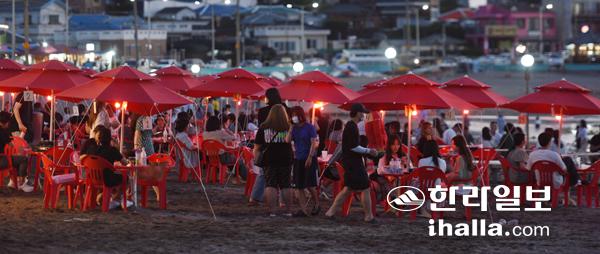 10일 제주시 이호해수욕장에는 저녁시간임에도 더위를 피하려는 시민들의 발길이 이어지며 문전성시를 이루고 있다. 이상국기자