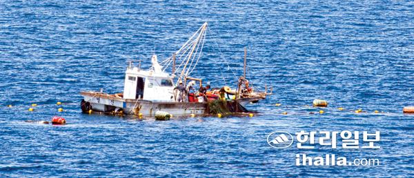 19일 제주시 애월 앞 바다에서 어민들이 조업으로 분주한 시간을 보내고 있다. 이상국기자