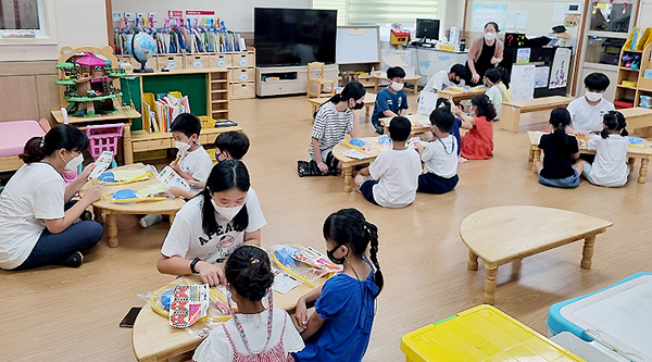 외도초병설유치원(원장 이금남)은 지난 2일부터 여름방학 중 방과후과정에 참여하는 유아들을 대상으로 초등학교 과학동아리 학생들과 함께 유·초연계프로그램으로 '함께하는 에어로켓 놀이'를 실시하고 있다.