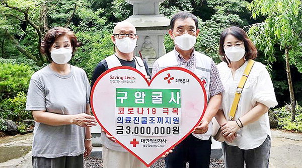 구암굴사(주지 해조 스님)는 지난 2일 구암굴사에서 대한적십자사제주특별자치도지사(회장 오홍식)에 선별진료소 의료진 냉조끼 지원을 위한 후원금 300만원을 기탁했다.