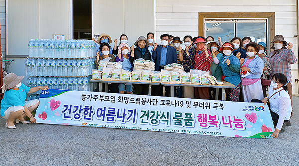 제주고산농협(조합장 고영찬)은 지난 5일 농협 여성조직인 농가주부모임(회장 강명옥)과 함께 농촌 취약계층을 대상으로 무더위 극복을 위해 미숫가루·생수 등의 물품을 전달하는 봉사활동을 벌였다.