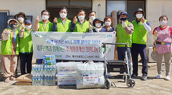 농협제주지역본부(본부장 강승표)와 애월농협(조합장 김병수), 제주도자원봉사센터(센터장 고태언)는 지난 6일 애월농협 관내 고령 농업인 가정을 방문해 '주거환경개선 및 성인용 보행기 등 생필품 전달' 희망나눔봉사를 펼쳤다.