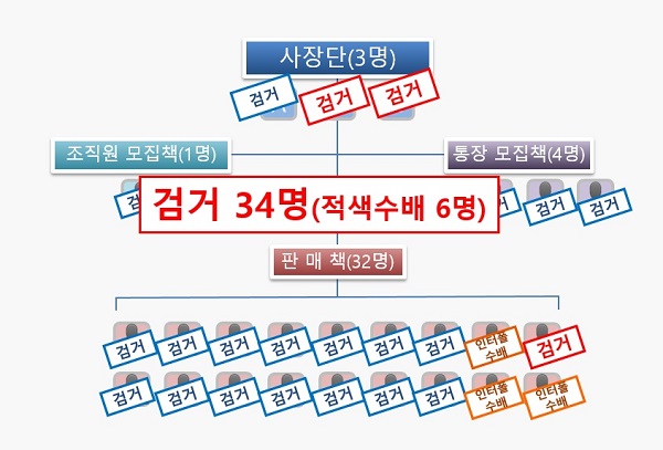 앞서 경찰은 지난해 10월 사장단 3명 중 1명인 강모(39)씨와 모집책, 판매책 등 조직원 30여명을 검거했고, 올해 초에도 인터폴에 적색 수배된 판매책 1명을 검거한 바 있다. 강씨의 경우 지난 2월 19일 제주지방법원 제2형사부(재판장 장찬수 부장판사)로부터 징역 15년을 선고 받았다.