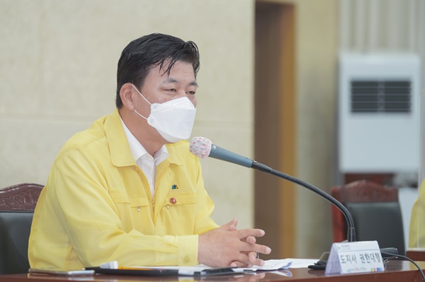 12일 오전 긴급 간부회의 갖는 구만섭 제주지사 권한대행.