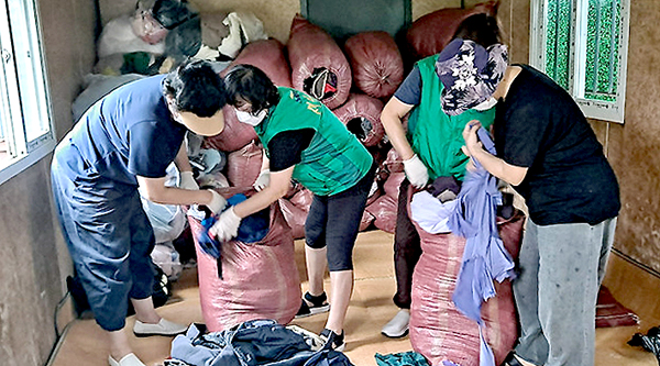 제주시 아라동새마을부녀회(회장 김순란)는 지난 20일 가정 내에 버려지거나 방치된 헌옷 등 생활폐기물을 줄이고 자원 재활용을 위해 클린하우스, 재활용도움센터 일대에서 3R자원 재활용 헌옷 모으기 활동을 전개했다.