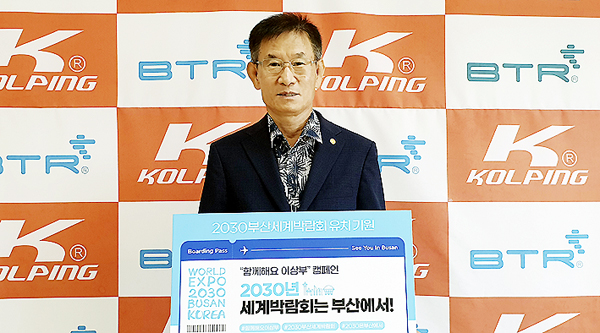 (주)콜핑 박만영 회장은 지난 27일 '2030 부산세계박람회' 유치를 위한 범국민 응원 캠페인 '함께해요 이삼부'에 동참했다. 박만영 회장은 "2030 부산세계박람회 유치를 통해 부산을 알릴 수 있도록 힘을 보태겠다"고 말했다.
