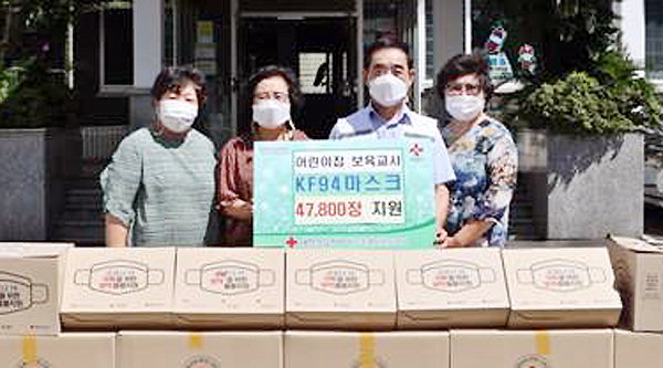 대한적십자사제주특별자치도지사(회장 오홍식)는 지난 27일 제주특별자치도어린이집연합회(회장 강은숙)에 KF94 마스크 4만7800장을 지원했다.