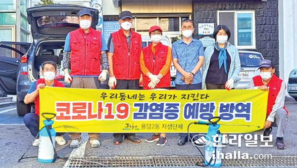 제주시 용담2동통장협의회(회장 강행복)는 지난 23일 회원 등 10여명이 참여한 가운데 관내 어린이공원, 공중화장실 등 다중이용시설을 대상으로 코로나19 방역활동을 실시했다.