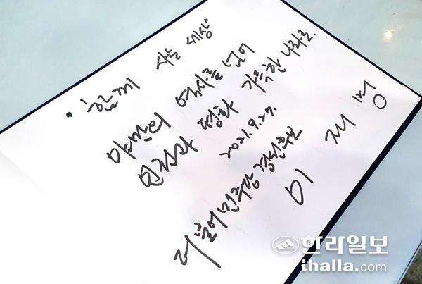4.3평화공원 참배후 이재명 후보가 남긴 방명록.