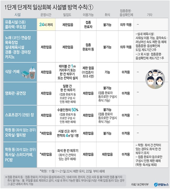 단계적 일상회복 1차 개편 11월 1일부터 시행