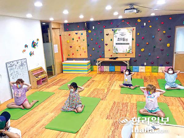 수눌음육아나눔터 16호점을 찾은 어린이들이 운영중인 프로그램을 체험하고 있다.