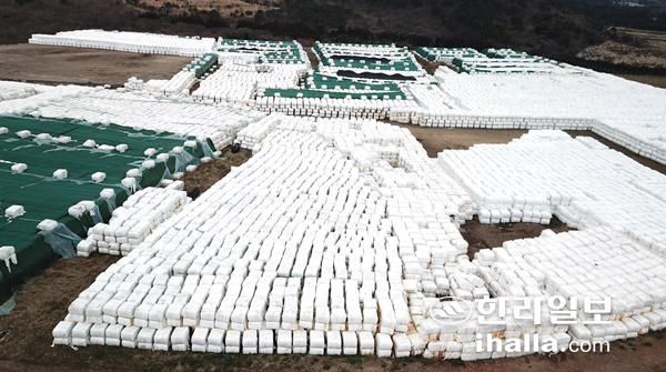 봉개동 매립장에 쌓여있는 폐기물 압축 쓰레기. 한라일보DB