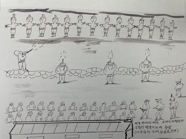 현상지 할아버지가 그린 1948년 12월 13일 토벌대에 의해 자행된 집단학살.