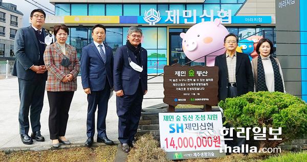 제민신협(이사장 고문화)은 지난 11일 제민신협아라지점에서 양기관 임원이 참석한 가운데 쾌적한 숲 조성을 위해 (사)제주생명의숲(상임대표 고윤권)에게 '제민 숲조성 사업비' 1400만원을 전달했다. 고문화 이사장은 "앞으로도 지역과 함께하는 조합과 사람 중심의 경영을 실천하겠다"고 말했다.