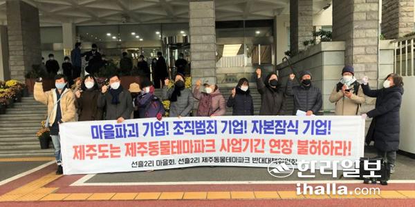 선흘2리 마을회와 동물테마파크 반대대책위원회는 23일 제주도청에서 기자회견을 열고 제주도의 사업기간 연장 불허를 요구했다. 김도영 기자