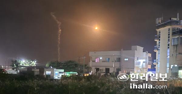 24일 저녁 서귀포시 안덕면에서 조명탄에 의한 섬광이 일고 있다. 독자 제공