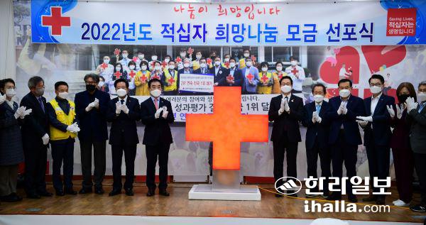대한적십자사 제주특별자치도지사는 30일 '2022 희망나눔 모금' 선포식을 갖고 집중 모급 활동을 시작했다. 강희만기자