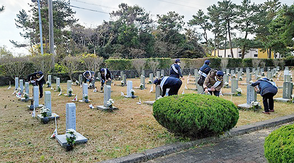 대한민국월남전참전자회 제주도지부(지부장 양형석)는 지난 10일 도지부 유족회(회장 이영자) 회원 24명이 참여한 가운데 구좌충혼묘지 정비 활동을 실시했다. 이날 활동에 앞서 유족 회원들은 월남참전기념탑과 구좌충혼묘지 현충탑에서 참배했으며, 현충탑 비문과 묘비를 닦았다.