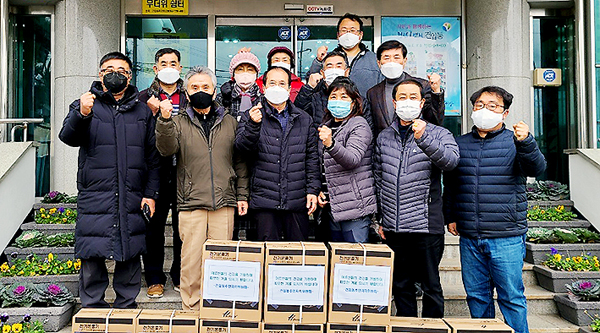 이날 건입동주민자치위원회 일동은 어르신들에게 사용하기 편리하고 화재위험이 덜한 온풍기를 전달하며 안부를 교환했다.
