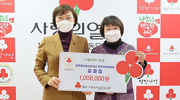 김엘림 한국방송통신대학교 제주지역대학장은 최근 제주사회복지공동모금회를 방문해 이웃사랑 성금 100만원을 기탁하고 '제주 나눔리더' 96호로 가입했다.