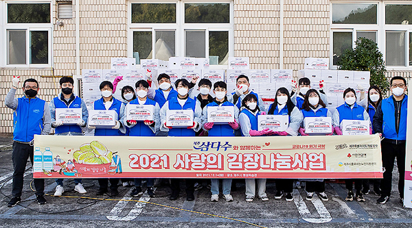 이날 행사엔 제주개발공사 소속 임직원들로 구성된 제주삼다수봉사대를 비롯해 제주시자원봉사센터 봉사자 등이 참석했다. 이들은 약 2650㎏의 김치를 담가 도내 독거노인, 장애인, 취약가구, 아동, 여성복지시설 등 지역사회 취약계층 가정에 전달했다.