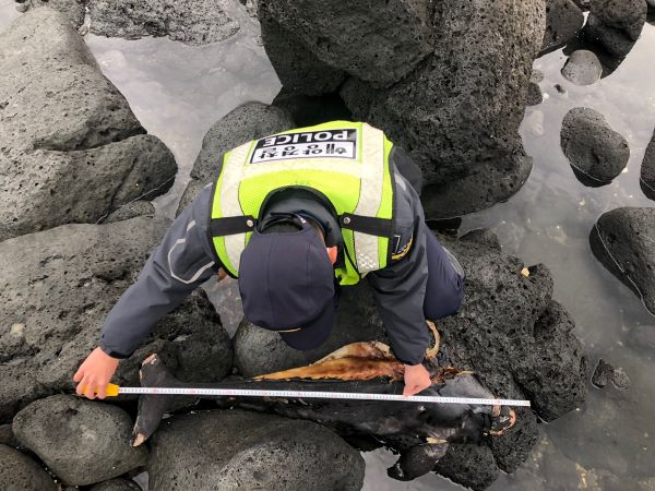 18일 제주시 애월읍에서 발견된 상괭이 사체. 사진=제주해양경찰서 제공