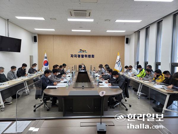 지난달 18일 열린 제주도 자치경찰위원회 실무협의회. 이 자리에서 국가경찰은 겨울철 교통관리에 대한 문제점과 대안을 제시했지만, 이달 17일 대규모 고립사태가 나기까지 별 다른 조치는 없었다. 사진=제주도자치경찰위원회 제공