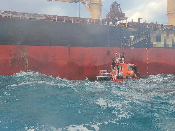30일 제주해양경찰서 연안구조정이 화물선 A호에서 응급환자를 이송하고 있다. 사진=제주해양경찰서 제공
