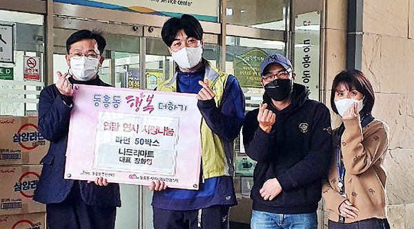 강윤봉 동홍동장은 "코로나19로 어려운 상황에도 연말연시를 맞아 어려운 이웃을 위해 라면을 기탁해 주신 나드리마트에 감사드린다"며 "관내 어려운 이웃에게 잘 전달하겠다"고 말했다.