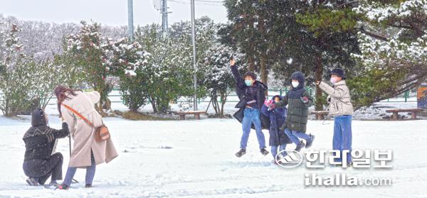 눈 쌓인 제주마 방목지. 한라일보DB