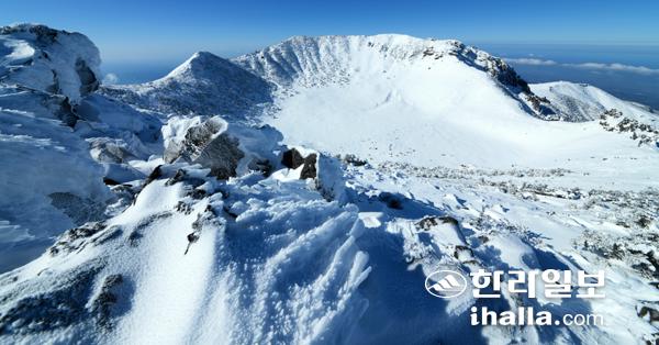 지난 5일 제주도 산지에 대설주의보가 발효되면서 많은 눈이 내린 가운데 6일 한라산 백록담에 많은 눈이 쌓여 장관을 이루고 있다. 사진=난대아열대산림연구소 제공