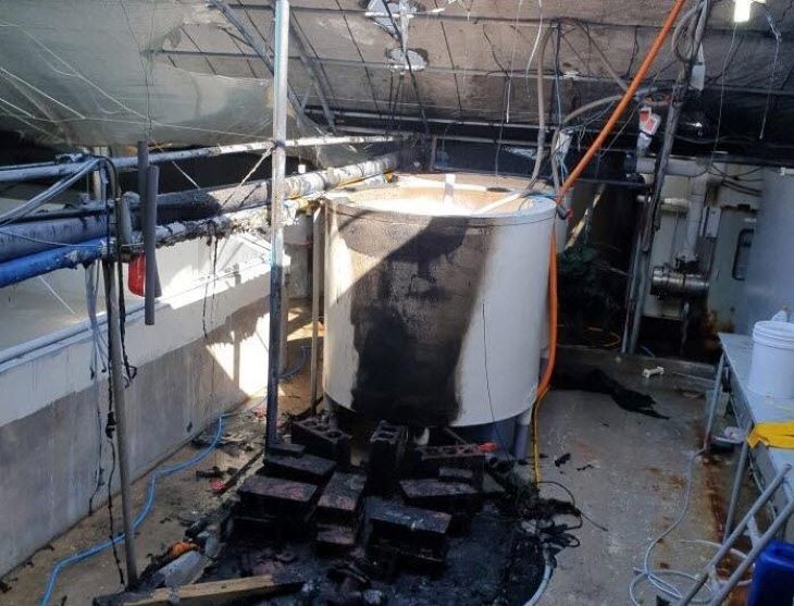 지난 31일 화재가 발생한 제주시 구좌읍 양식장의 수조의 모습. 사진=제주동부소방서 제공