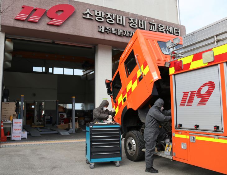 제주소방안전본부 소방장비정비교육센터는 24시간 상시 정비시스템을 운영해 출동공백 제로화를 추진하고 있다. 사진=제주소방안전본부 제공