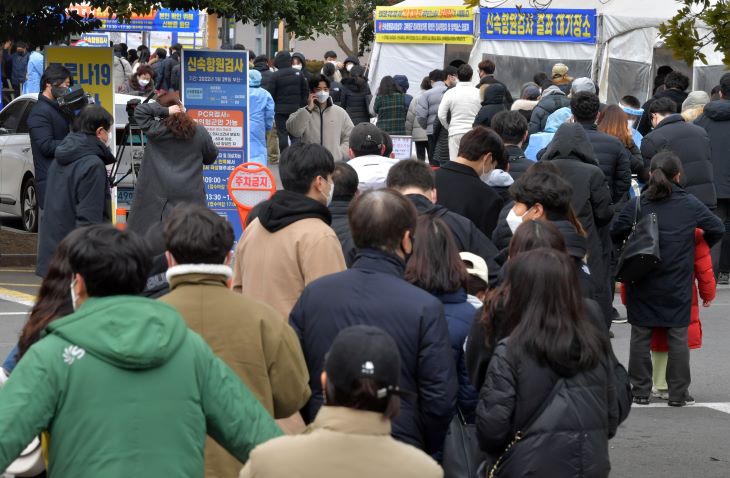 3일 오전 제주보건소에는 코로나19 PCR 검사와 신속항원검사를 받으려는 시민들이 몰려 줄이 길게 늘어서 있다. 강희만기자