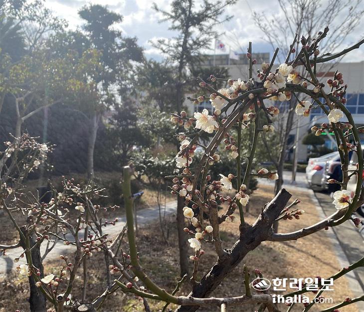 제주지방기상청 관측소에서 관측된 매화 개화. 사진=제주지방기상청 제공