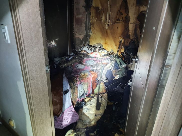 8일 밤 화재가 발생한 제주시 조천읍 함덕리의 한 아파트 내부의 모습. 사진=제주동부소방서 제공