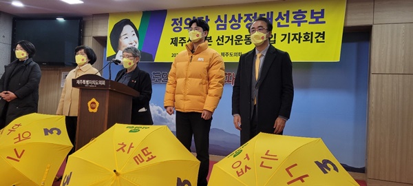 정의당 심상정 대선후보 제주도 선거대책본부는 14일 제주도의회 도민카페에서 기자회견을 열었다. 강다혜기자