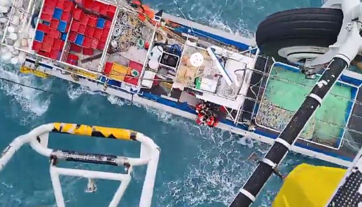 18일 차귀도 남서쪽 약 65㎞ 해상에서 조업 중 발생한 응급환자를 제주해경이 헬기를 이용해 구조하고 있다. 사진=제주해양경찰청 제공